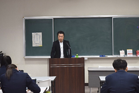 1月17日(金)の放課後、本校の就職アドバイザーである田口太彦先生を講師に迎え「東商の卒業生」というテーマで就職内定者研修会を開催しました。