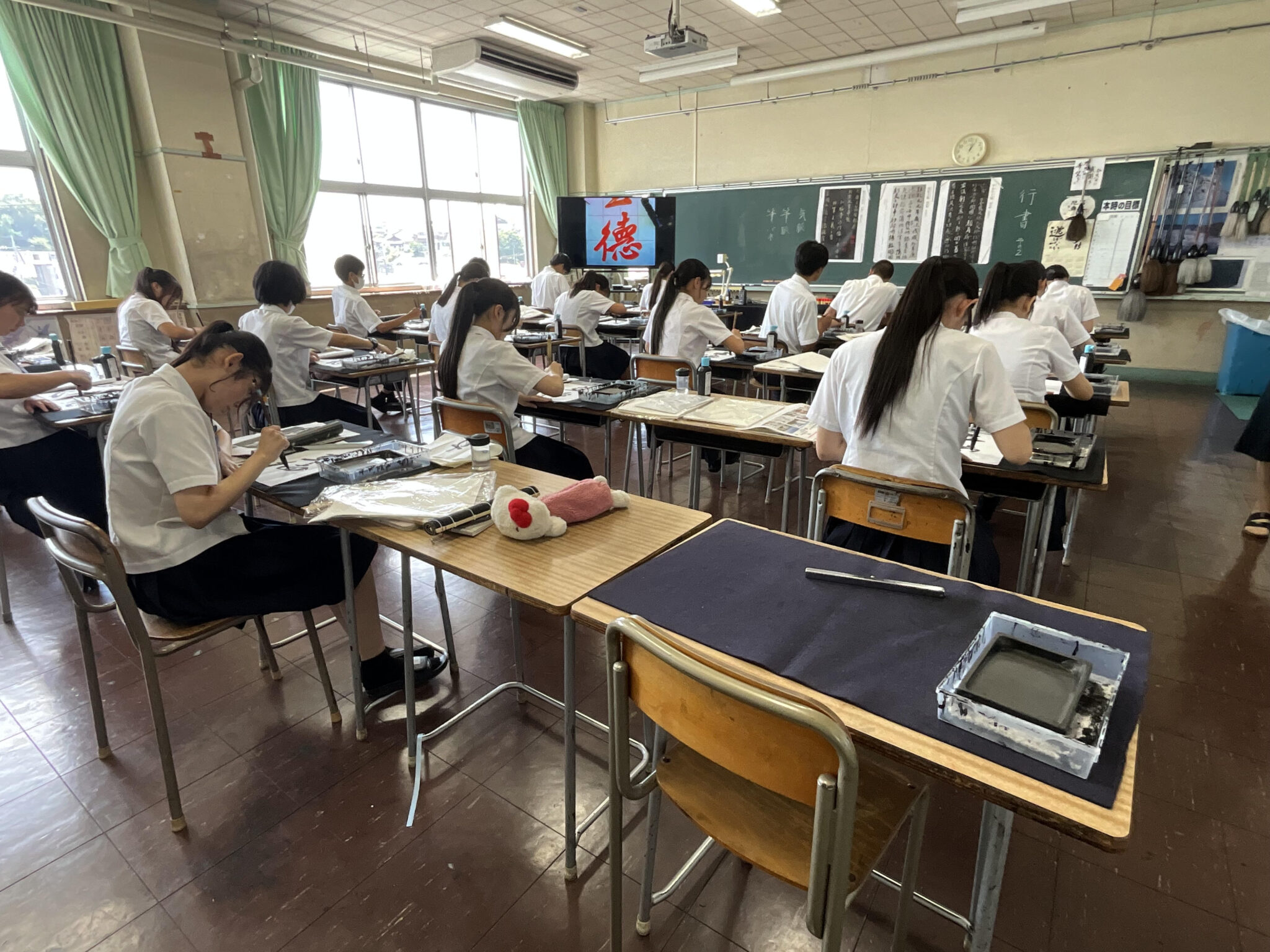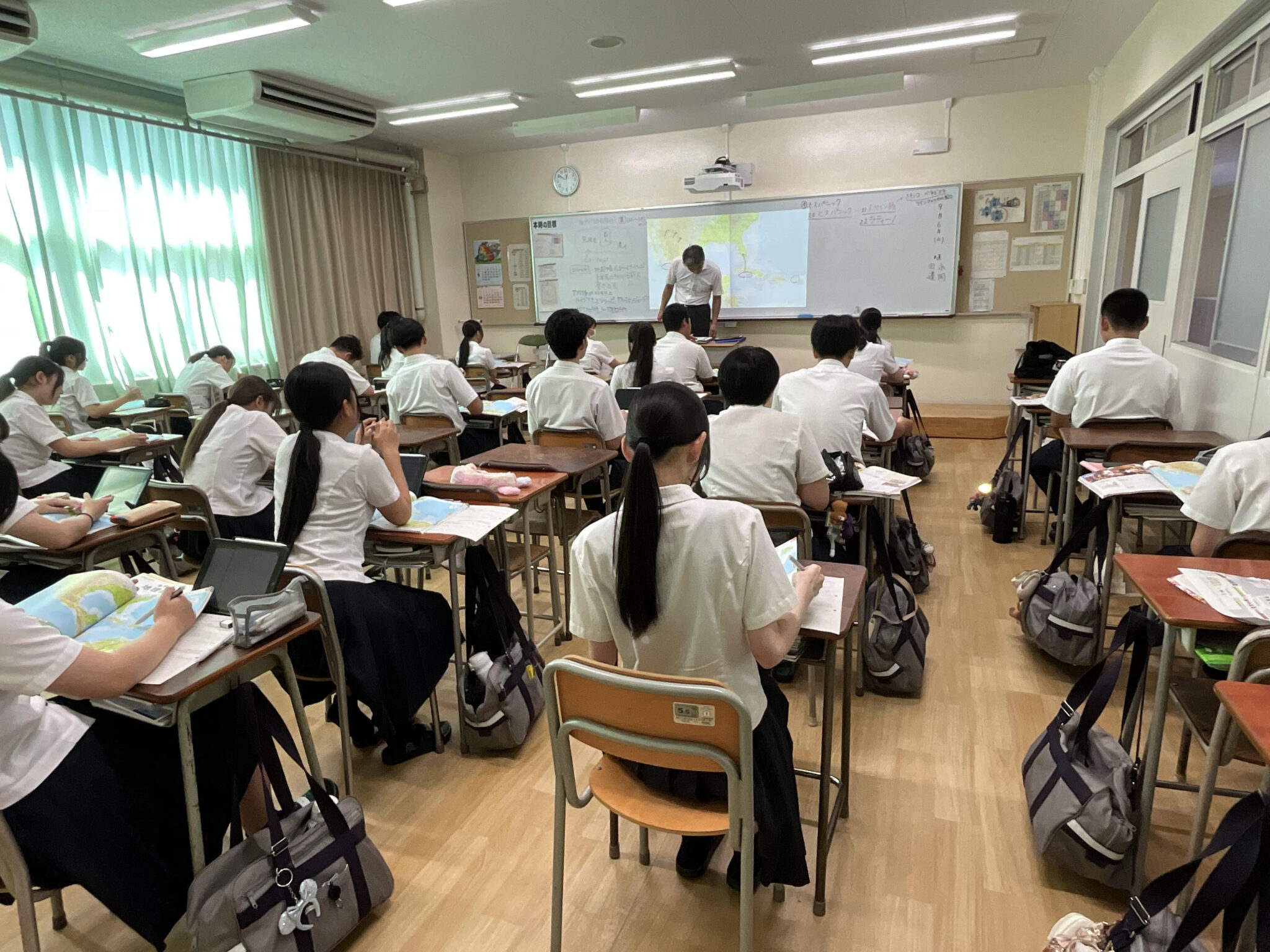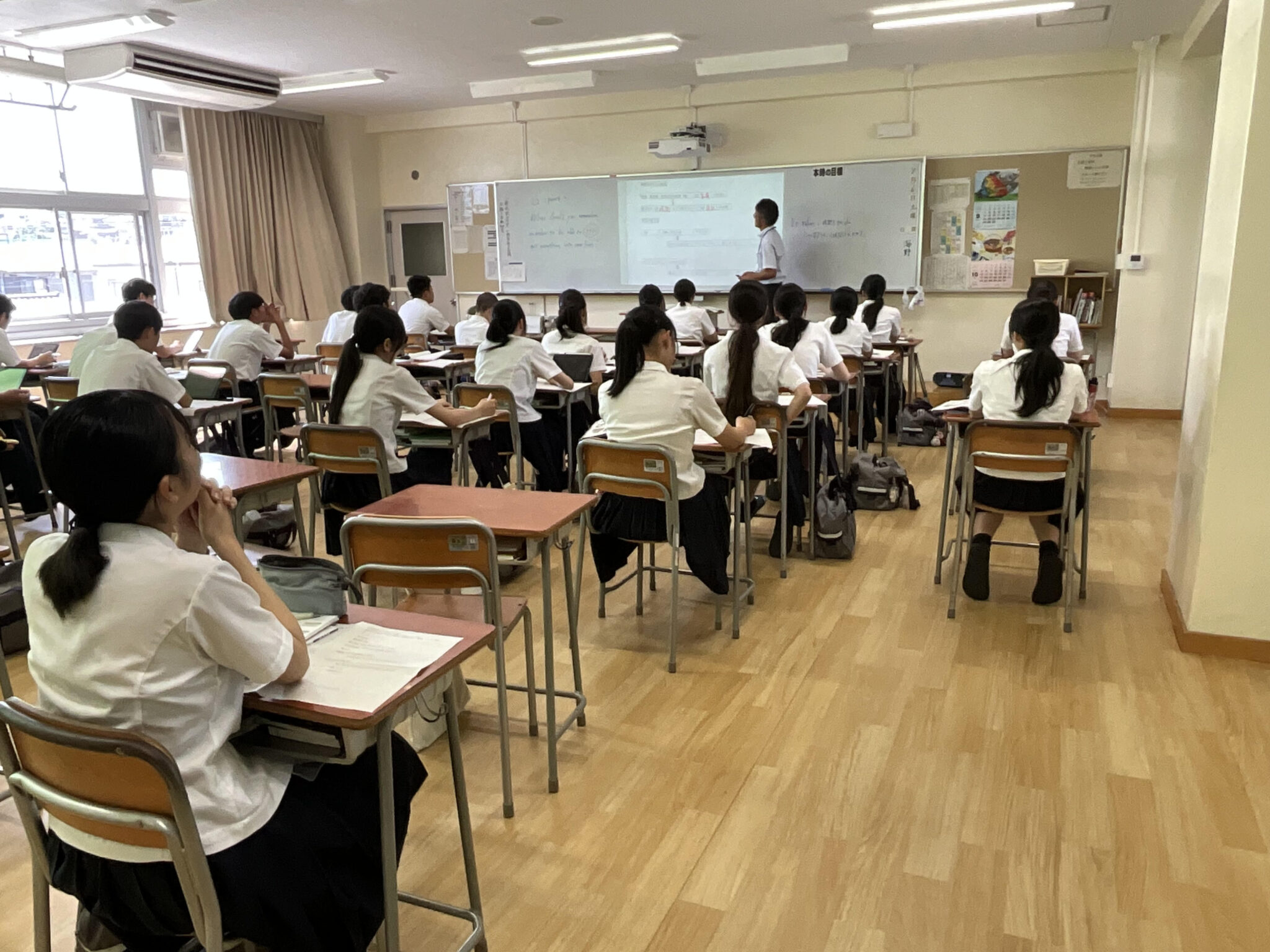 東商業のすべての普通教室は,チョークを使う黒板ではなく,ホワイトボードです。 プロジェクタからの投影が見やすく,直接書き込みができることが利点の一つです。