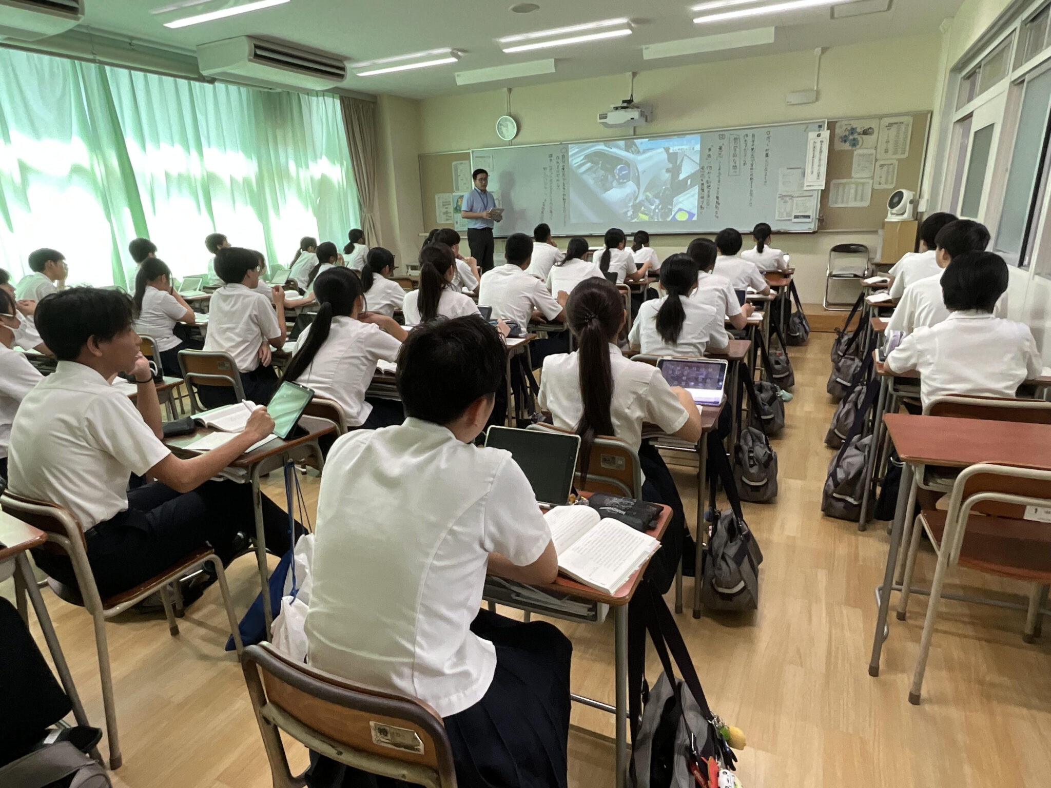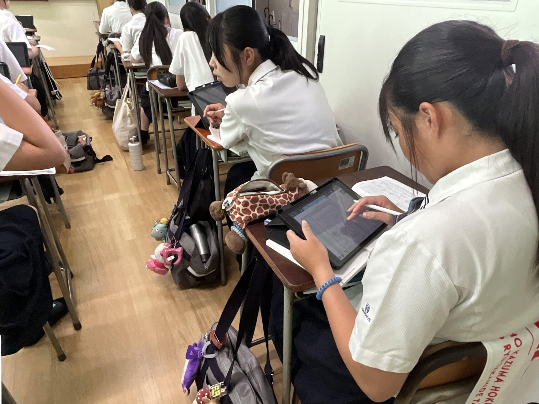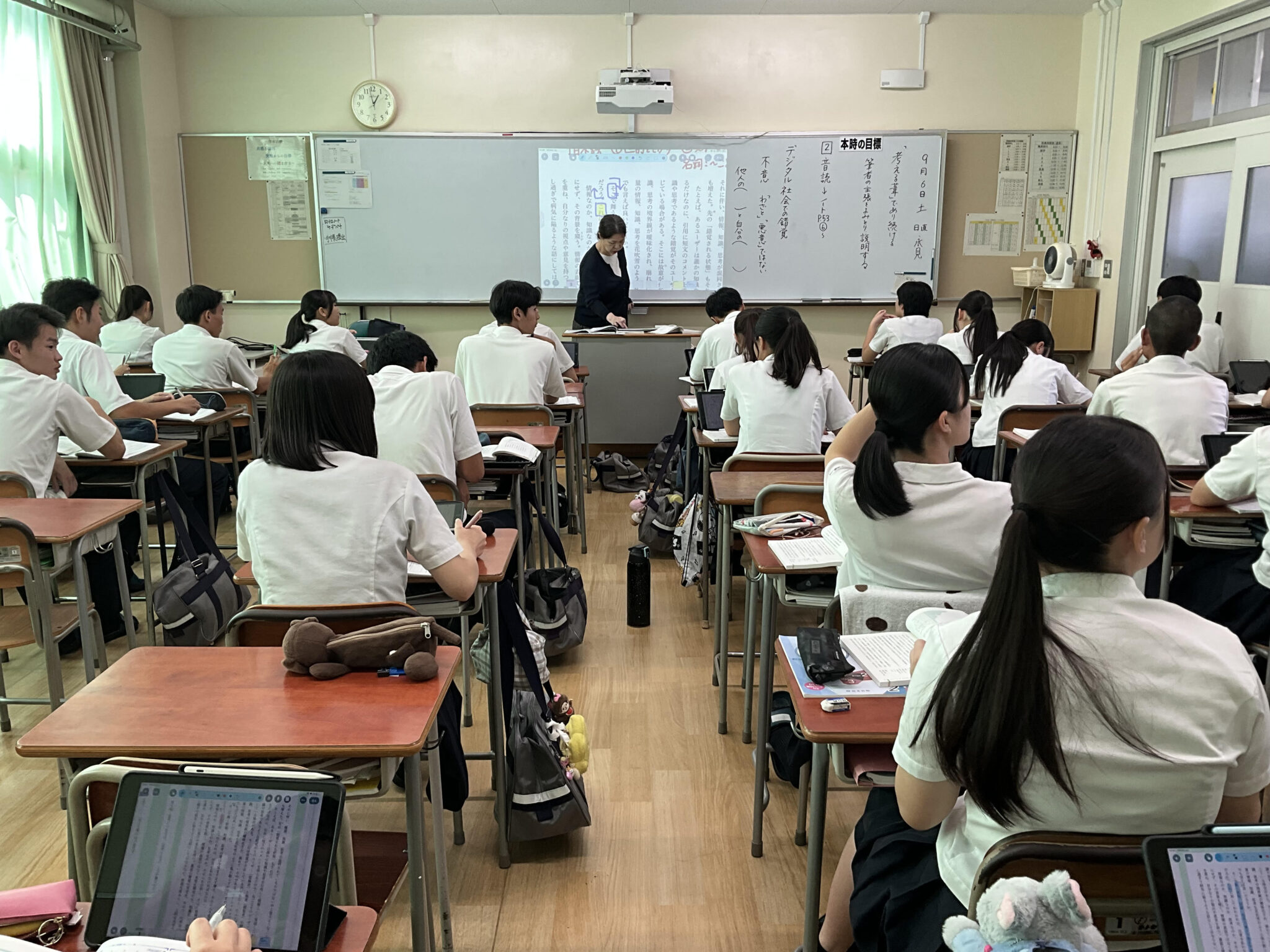 生徒の1人1台端末はiPadを使用し,教材の受領や提出,話し合いのツールまたはお手本の提示など様々な活用をしています。
