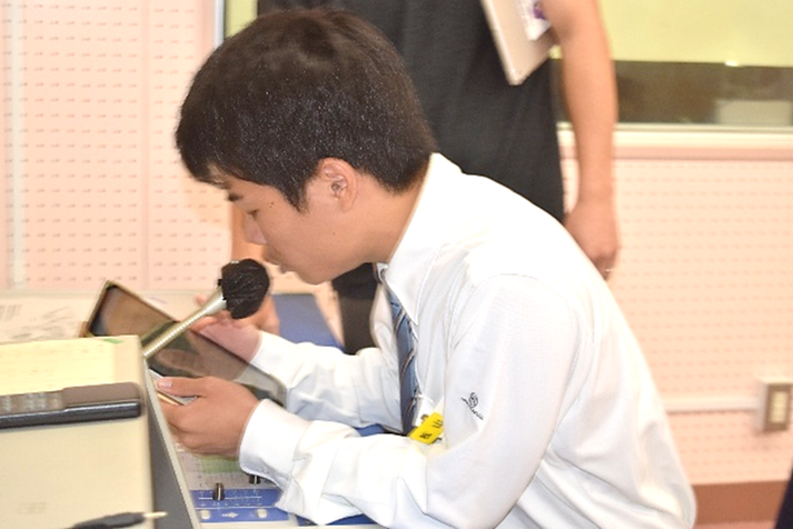 10月21日(火)の朝礼時、次期生徒会役員に立候補した生徒が、校内放送を通じて全校生徒に向けた挨拶を行いました。