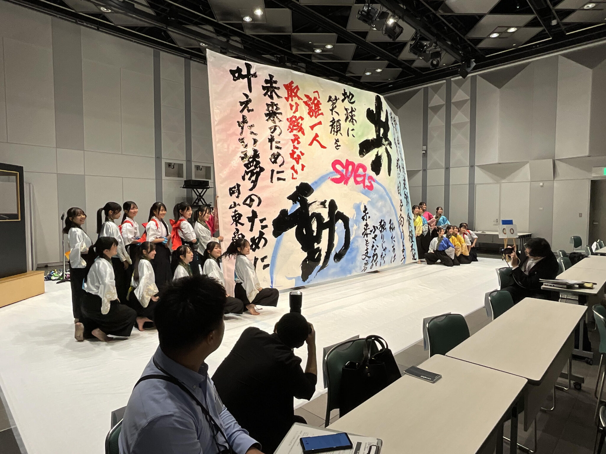 10月21日(火)、書道部が岡山コンベンションセンターで開かれ、第14回グローバルRCE会議(14th GLOBAL RCE CONFERENCE) のオープニングで書道パフォーマンスを披露しました。