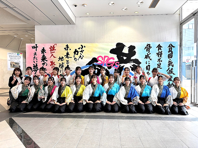 世界の各地で起きている社会問題にみんなで立ち向かうことを表現しました。 作品を仕上げると同時に一人ひとりが英語でメッセージを発信し、日本の文化の魅力と平和への思いを世界へ届けました。