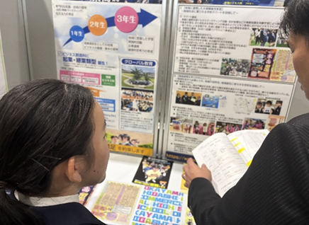 10月25日(土)・26日(日)に福島県郡山市で開催された『第35回産業教育フェア福島大会』に出展しました。本校のビジネス創造科3年生の2名が岡山県内の商業高校を代表して、商業の学びや取組を全国に向けてPRしました。