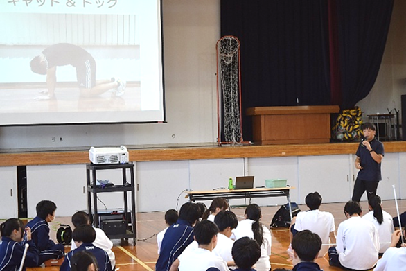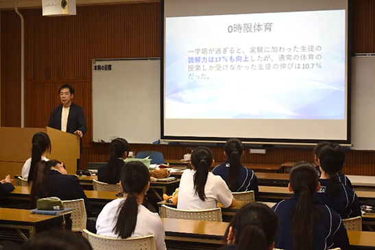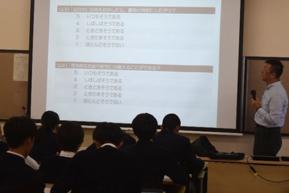生徒ひとり一人が「ケガ予防のために知っておきたいこと」「運動すると頭が良くなる!そんな話を聞いたことありませんか?」「知っておきたい噛む力」「最高のパフォーマンスのためのメンタルトレーニング」の4講座の中から自分なりの健康課題を見つけ、選択・受講しました。