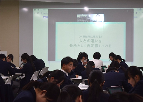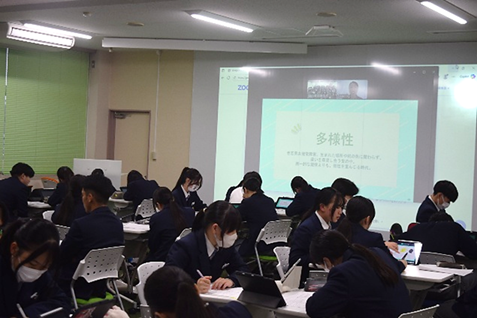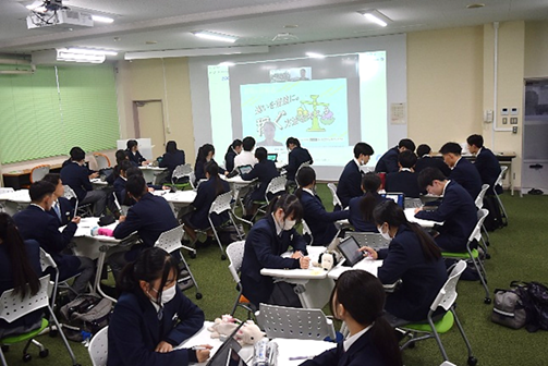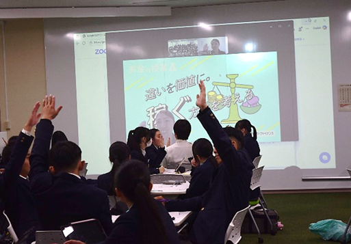 今回の研修では、生徒がグループに分かれ、「稼ぐ方法」についてアイデアを出し合い、意見をまとめる活動を行いました。大崎先生からは「稼ぐとは、労働の価値とお金の交換であり、単なる時間の交換ではない。また、有用性・希少性・多様性を理解することが大切である」というお話をいただきました。生徒たちは資産形成に関する知識を深めることができ、大変有意義な研修となりました。