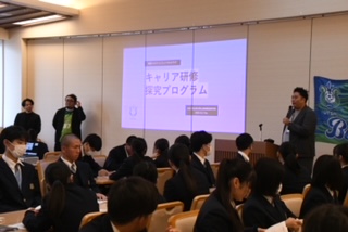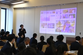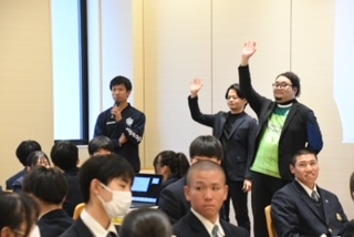 小田原市探求学習プログラムで「かまぼこの里」を訪問しました。そこで湘南ベルマーレフットサルスタッフによるゲストインプットトークが行われ、その後生徒体験型のワークショップを実施しました。最後に生徒代表によるお礼と記念撮影で終了しました。