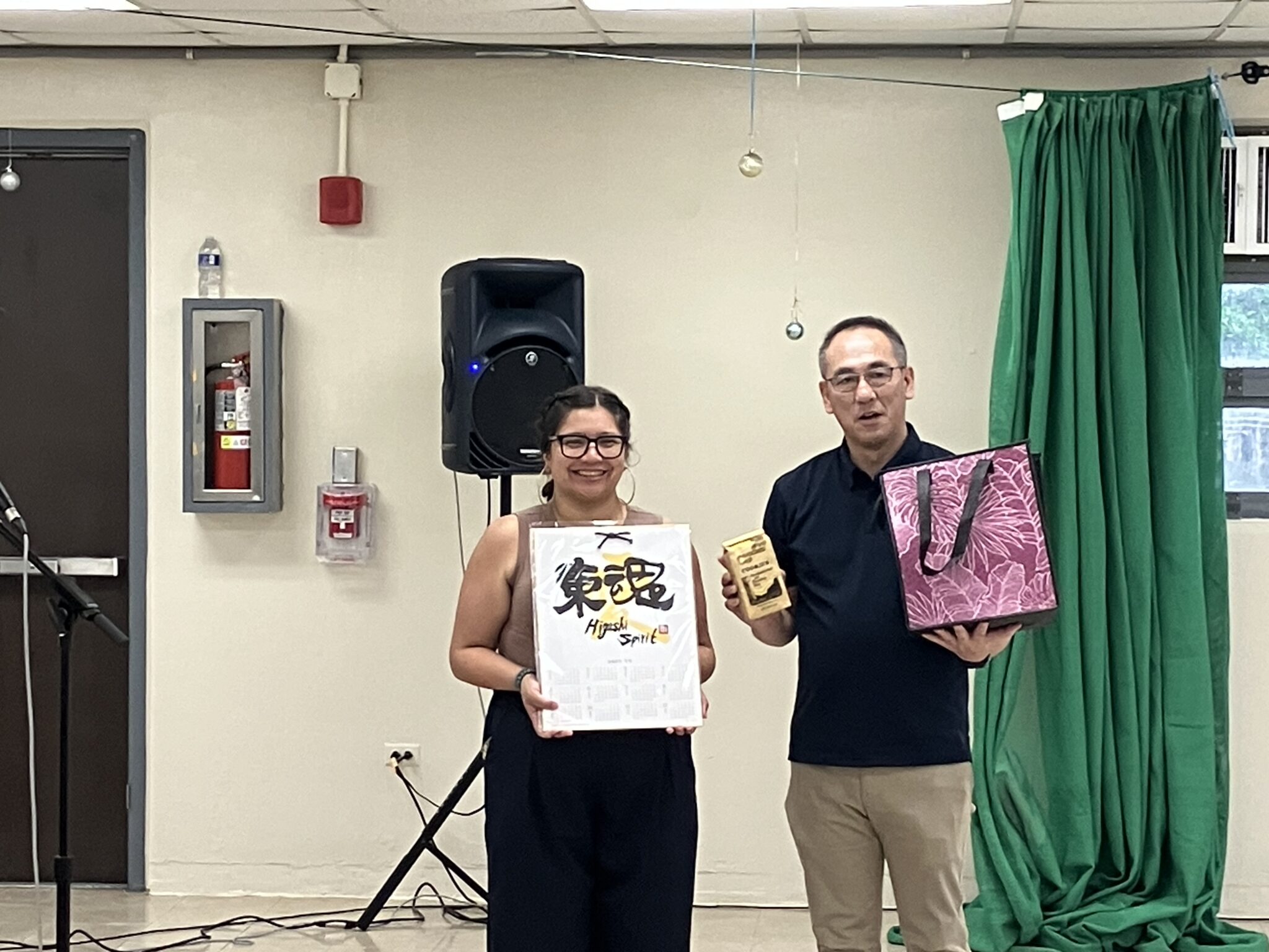 場所を移動して、マーケティングの授業で「グアムと日本(岡山)」に関するロゴを作成したエコバッグを作りました‼️