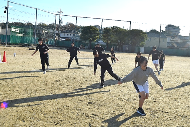 この日は、先日の筋力トレーニングをより実践的につなげる内容に取り組みました。