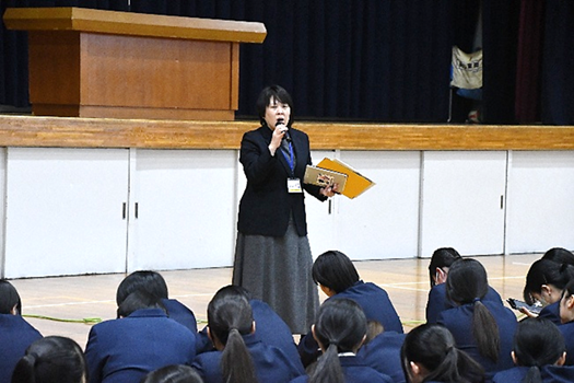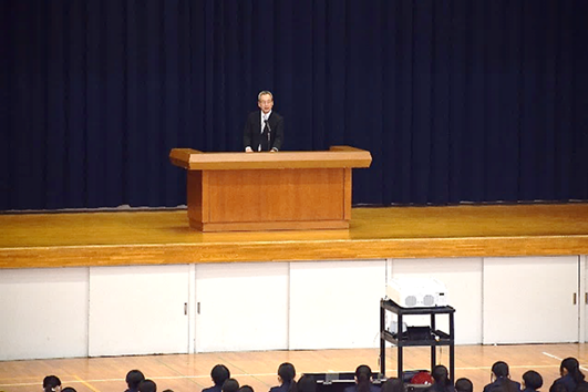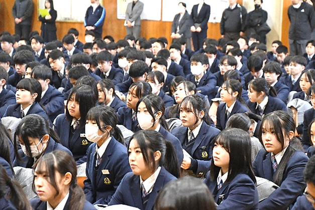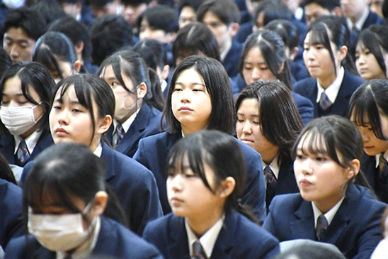 また、春高バレーで本校バレー部が7年ぶりに2回戦へ進出したことや吹奏楽部へ定期演奏会を称え、「部活動は応援に支えられています。これからも仲間同士で応援し合い、学校を盛り上げてください」と激励されました。