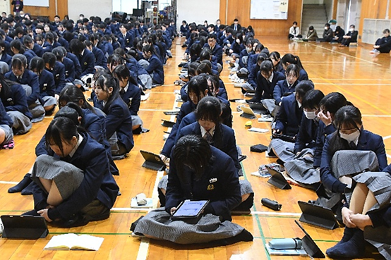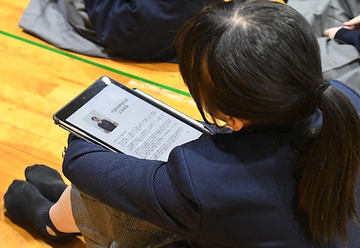 生徒たちは、iPadに配信された資料を確認しながら、各種報告を受けました。