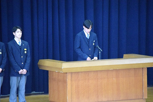 1月15日(木)、体育館にて男子バレーボール部の全国大会報告会が行われました。