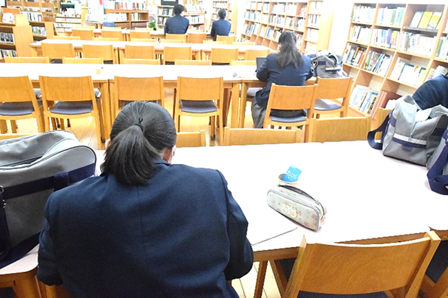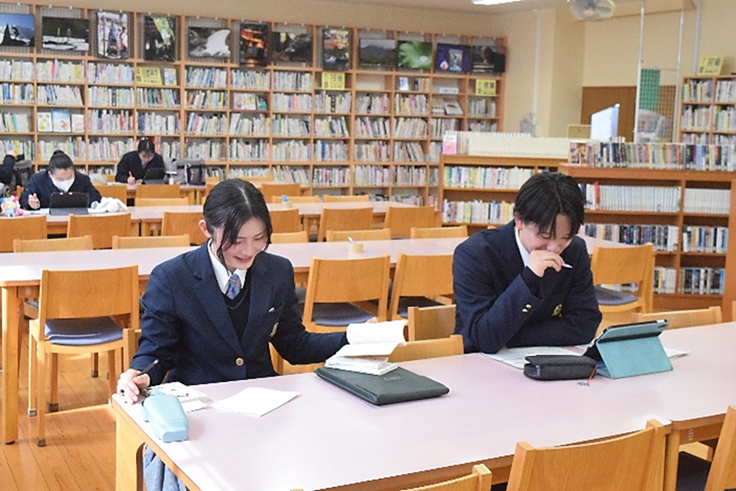 2月24日(火)放課後、図書室では、生徒たちが静かな環境の中で真剣に学習に取り組んでいました。