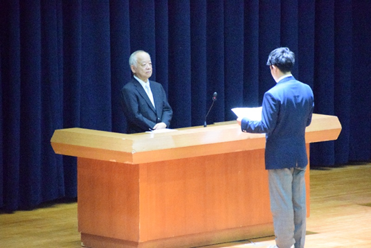 はじめに、東商77期代表の脇本悠翔さんの発声で卒業生全員の入会宣言がありました。