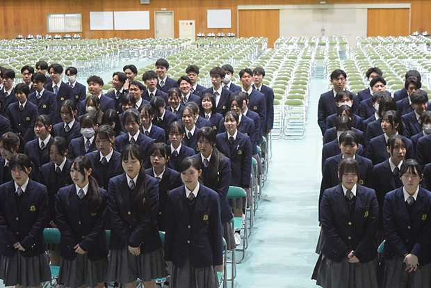 2月27日(金)、体育館にて操業を控えた3年生の「東商77期同窓会入会式」を行いました。