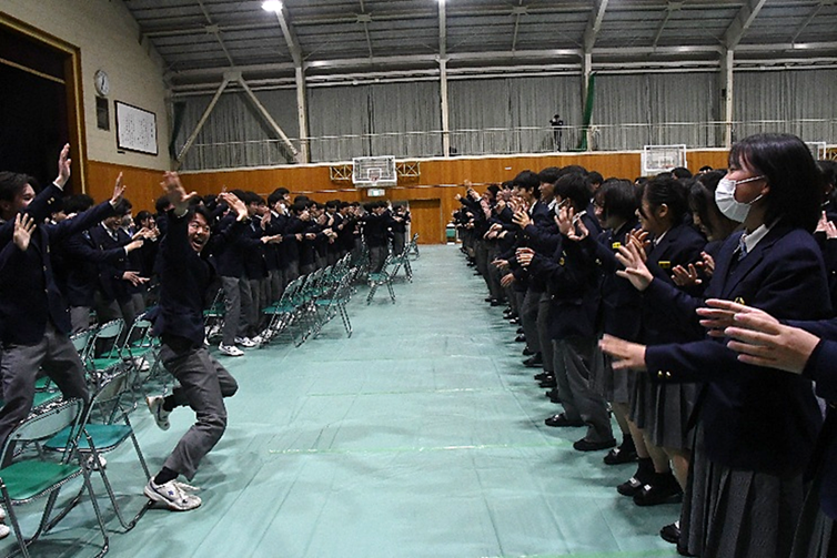 1・2年生は、卒業生への感謝を込めて「パラ銀」をダンスとともに元気いっぱいに披露!
