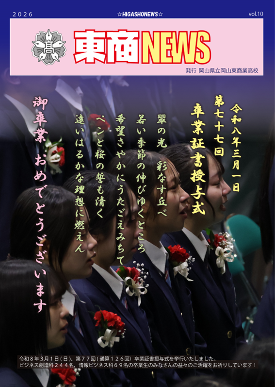令和7年度東商NEWS第10号を発行し、アップしました。第10号は平成7年度卒業証書授与式の画像を掲載しました。