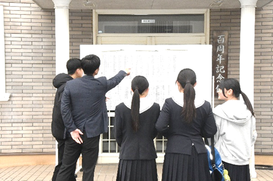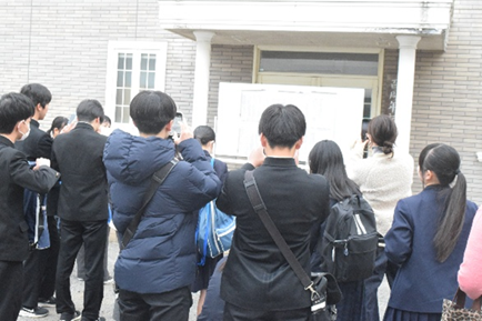 当日は、朝早くから多くの受検生や保護者の方が来校されました。自分の番号を見つけた瞬間、思わず笑顔になる姿や、喜びを分かち合う様子がとても印象的でした。