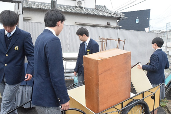 中にはリヤカーで何度も往復しながら廃棄物を運び出す場面もあり、重い荷物を協力して運ぶ姿が見られました。