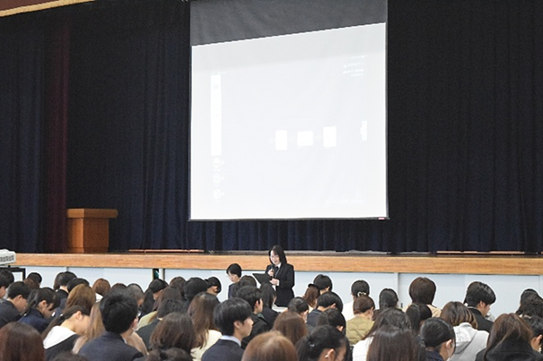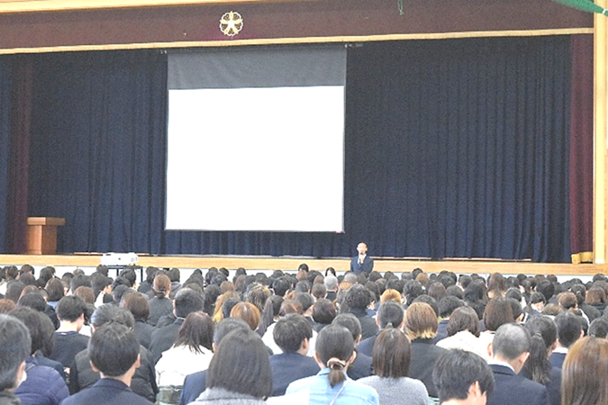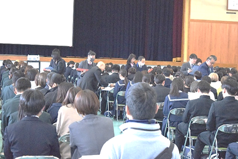 入学予定のみなさんは、これから始まる新しい学校生活に期待と少しの緊張を感じながら、真剣に説明に耳を傾けていました。
