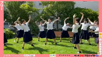 コロナウイルスの影響で岡山県に緊急事態宣言が出され、部活動が出来ていなかった1年生と高校に入学してからまだダンス部以外の人前で踊ったことが無い2年生にダンスの楽しさを改めて実感して欲しい、また、一番部活動に専念できるはずだった2年生での練習や行事の中止で発表の場を失った3年生、ダンスへの思いと積み上げてきた努力を思い切り表現して欲しいという思い、そしてその姿を見ていただくことで、お世話になった方や岡山に感謝と元気を届けるために応募し、出演することができました。