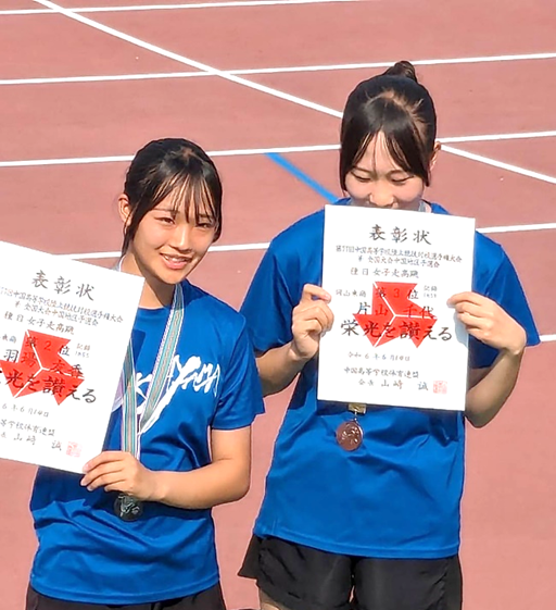 走り高跳び 3位 羽場友香選手(2年生)・4位 片山千代選手(2年生)