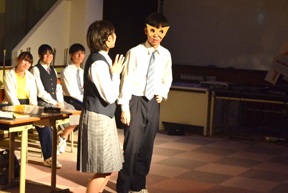 演劇部では「日の丸水産~ヒミコ、日野家を語る~」の公演を行われました。 笑いあり、涙あり、独りの少女の新たな一歩を描いたもので、観劇した人をとても感動させる公演でした。