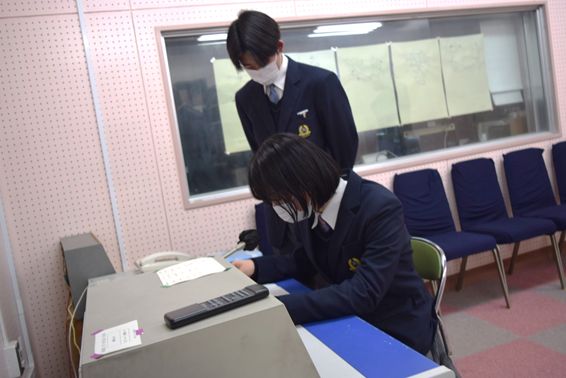1月31日(月)、風紀委員から「今週の目標は『昼食時の黙食・換気!』です。コロナ対策については、全校で取り組まなければ防ぐことができないので、危機意識を持った行動をお願いします。」と全校生徒に向けて放送しました。