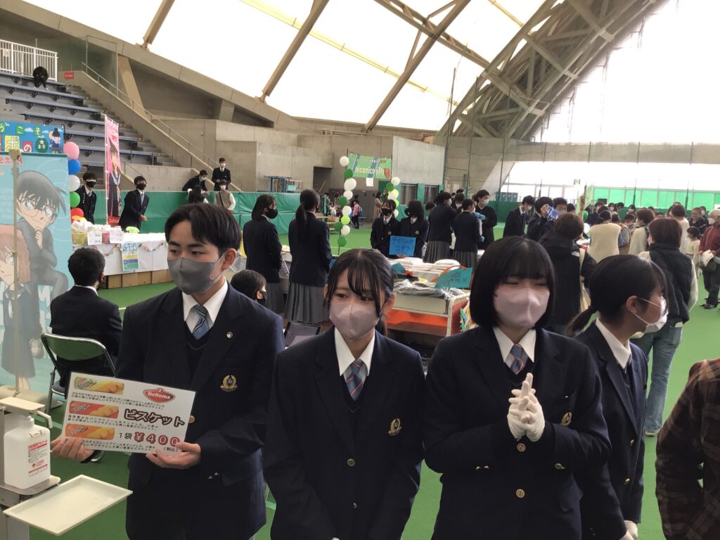 コロナ禍での実施に向けて、生徒達も対策や工夫を凝らし、前日準備から、当日の販売までお客様に喜んでいただけるよう真心を尽くしました。
