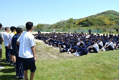 4月23日(火)定期戦結団式がありました。倉敷商業との激戦に備えて心を一つにすることができました。校長先生からの熱い激励の言葉にチーム東商が奮い立ちました!