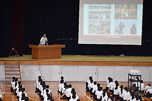 7月19日(金)、体育館で表彰伝達式・全国大会壮行式を行いました。内容は次のとおりです。